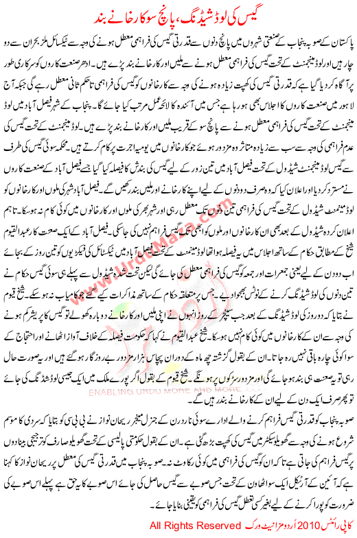 Gas Loadsheding 500 Karkhanay Bnd