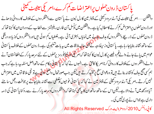 Pakistan Drone Hamlon Pr Aitrazat Cum Karay Americi Senat Kameti