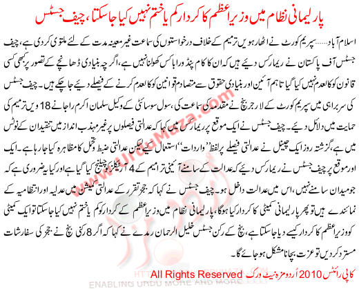 Parlimani Nizam Ma Wazir E Azam Ka Kirdar Khtm Ni Kiya Ja Skta Cj