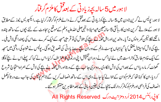 Lahore 5-year-old Murder After Rape Suspect Arrested
