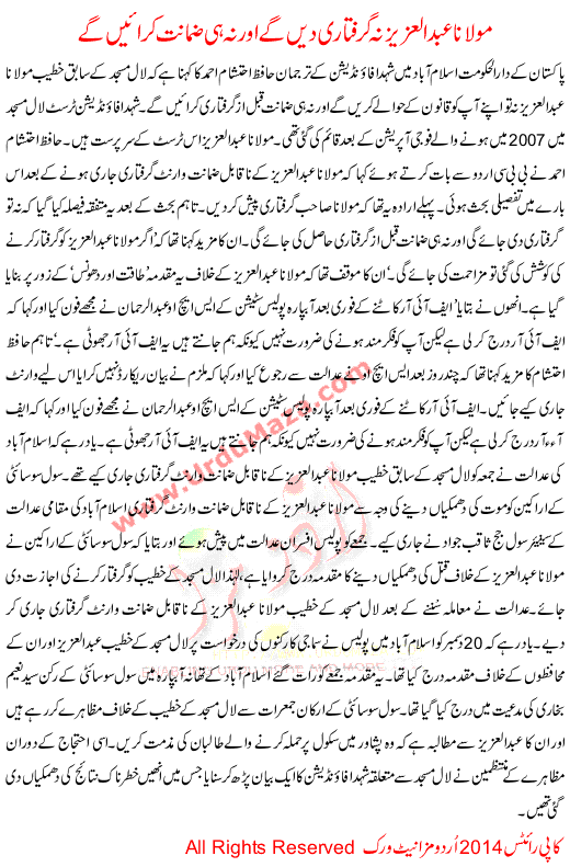 Maulana Abdul Aziz Will Not Arrest Nor Would Guarantee