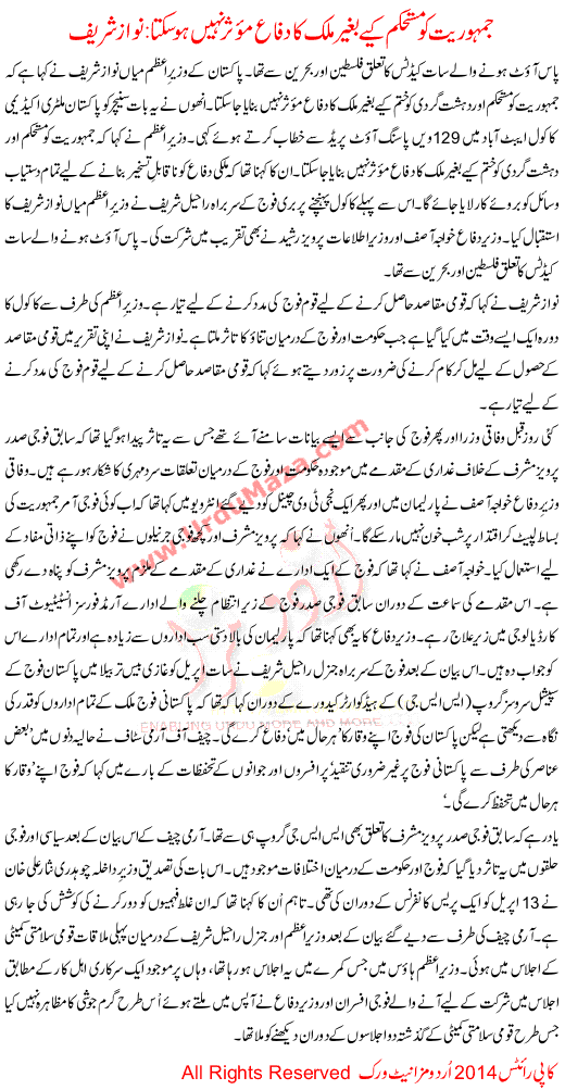 Country Can Not Defend Withour Democracy Secure Nawaz Sharief