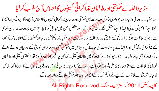 Today Minister Call Government And Taliban Negotiators Committee