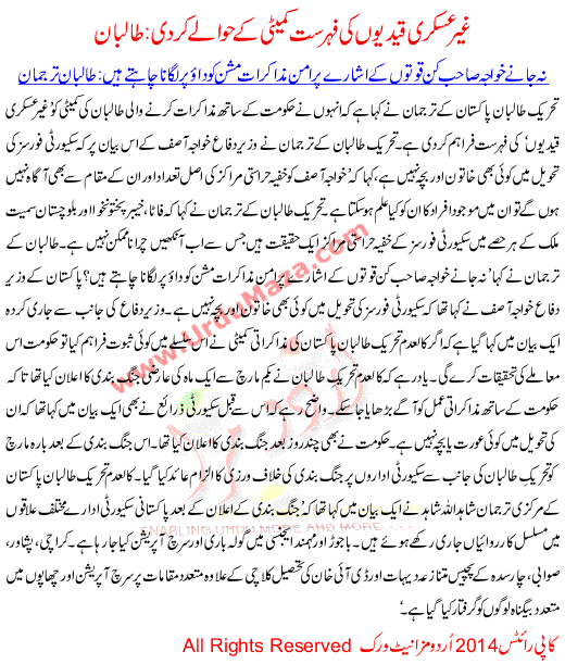 List Of Non-military Prisoners Handed Over To Comitee Talban