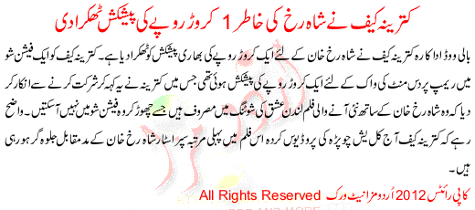 Katrina Kaif Na Shahrikh Khan K Liay 1 Crore Ki Offer Thukra Di