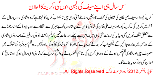 Is Saal He Apnay Saif Ki Dulhan Bnu Ge Kareena Ka Ilan