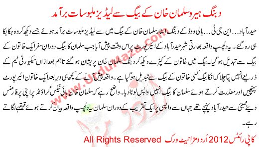 Dabung Hero Salman Khan K Bag Se Ladies Malbosat Baramad