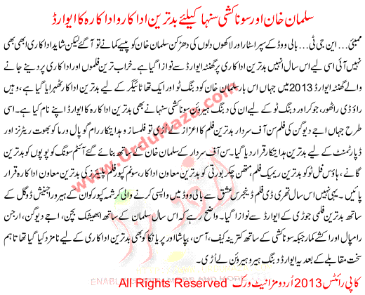 Salman Khan And Sunakshi Sinha Awarded The Worst Actors