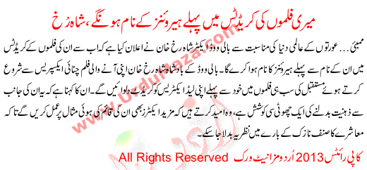 Mere Filmo Ki Credits Me Pehle Heroins K Naam Honge Shah Rukh