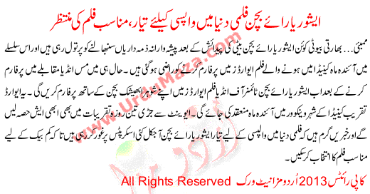 Ashwaria Raye Bachan Filmi Dunya Me Wapsi K Lye Tyar