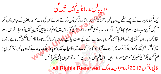 Widya Balan Will Not Nominated For Mother India