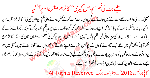 Trailer Of Sanjay Dut's Movie Police Geeri Is Released Today.