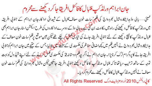 John Ibraham Fifa Final Ni Dekh Skain Ga