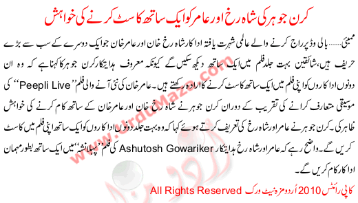 Karan Johr Shahrukh Or Amir Ko Aik Sath Cast Krnay K Khwahishmnd