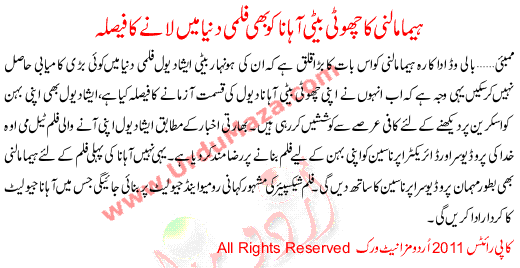 Himma Malini Ka Apni Choti Beti Ahana Ko Filmi Dunya Ma Lanay Ka Fesla