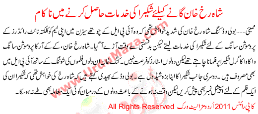 Schah Rukh Khan Gane K Lye Schakira Ki Khidmat Hasil Karne Me Nakam