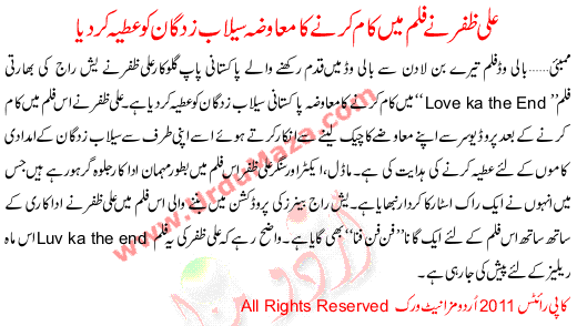 Ali Zafar Na Film Ma Kam Karnay Ka Muawza Sailab Zadgaan Ko Atiya Kr Diya