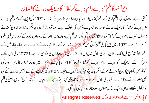 Dav Anand Ka Film Hary Raam Haray Karishna Ka Remake Bnanay Ka Ilan