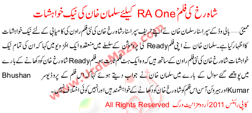 Shahrukh Ki Film Ra One K Liay Salman Ki Naik Khwahishaat