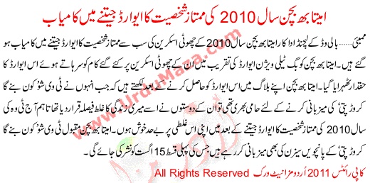 Amitab Bachan Saal 2010 Ki Mumtaz Shakhsyat Ka Award Jeetne Me Kamyab