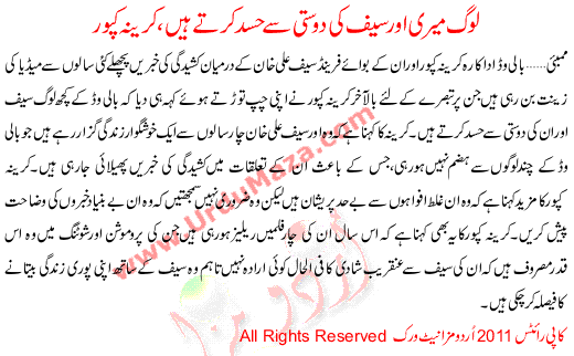 Log Meri Or Saif Ki Dosti Sa Hasad Krtay Hain Kareena Kapoor