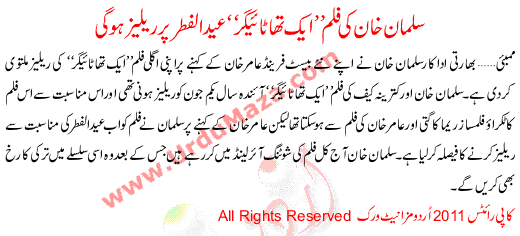 Salman Khan Ki Film Aik Tha Tiger Eid Ul Fitar Pr Release Ho Ge