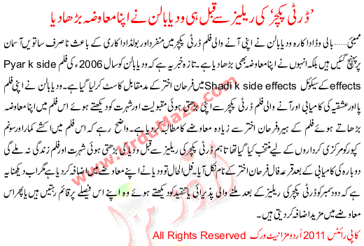 Dirty Picture Ki Release Sa Qabal He Vidya Balan Na Apna Muawza Barha Diya