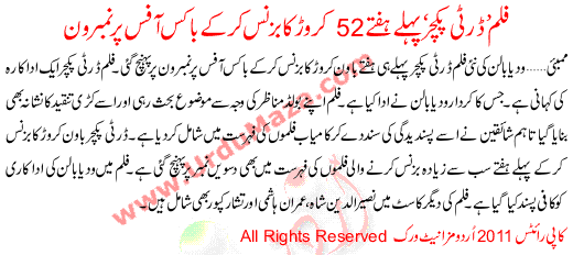 Film Dirty Picture Pehlay Haftay 52 Crore Ka Business Kr K Box Ofice Pr Kamyab