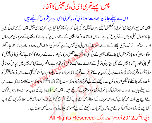 Cheen Pehlay 3d Tv Channel Ka Aghaz