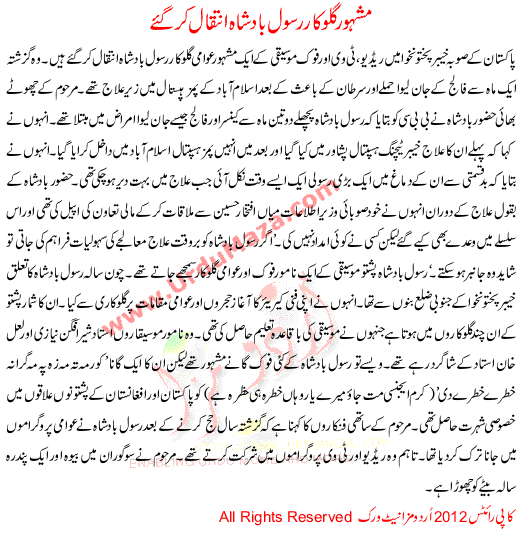Mashoor Gulukar Rasool Badshah Intkaal Kr Gaye