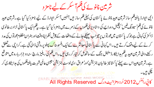 Sharmeen Chinoye Ki Film Oskar K Liay Namzad