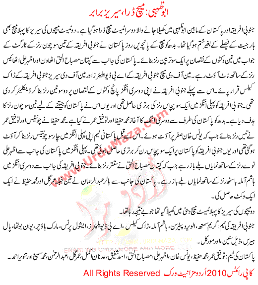 Abu Zehbi Match Draw Series Brabr