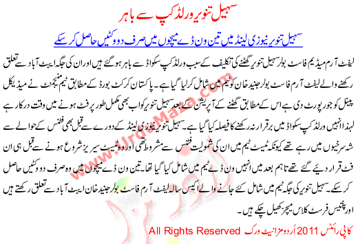 Sohail Tanveer Is Out Of Worldcup 2011 Squad He Could Took Just 1 Wicket In New Zealand Tour