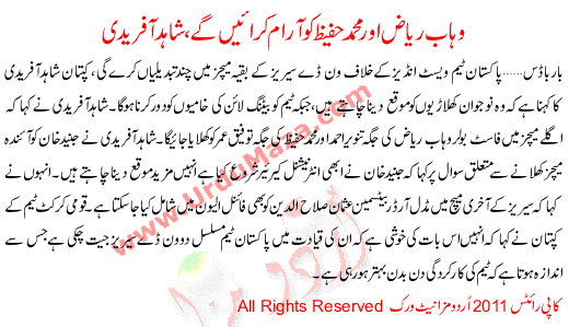 Wahab Riaz Or Muhammed Hafeez Ko Araam Krvaen Ga