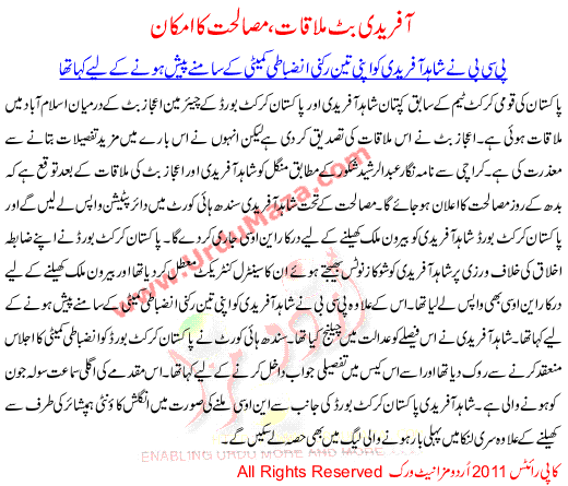 Afridi Butt Mulaqat Musalhat Ka Imkan