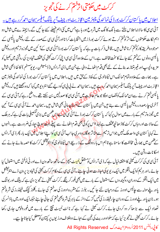 Cricket Me Hakomti Asar Khatam Karne Ki Tajweez