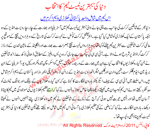 Dunya Ki Behtreen Test Team Ka Intkhab