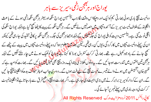 Yuvraj Or Harbajan Zakhmi Series Say Bahir