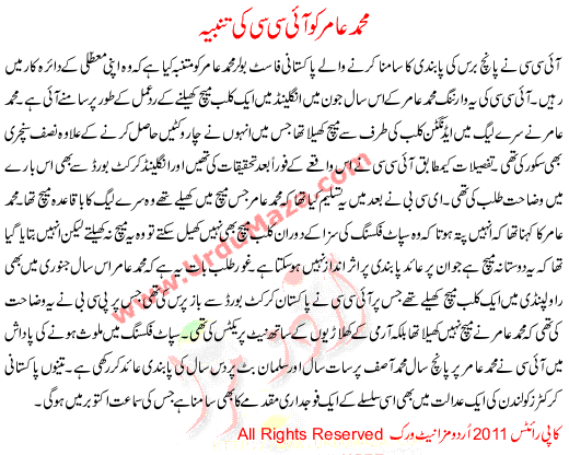 Muhammad Amir Ko Icc Ki Tanbeh