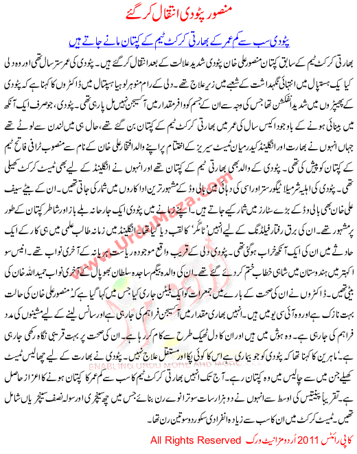 Mansoor Patodi Intkaal Kr Gaye