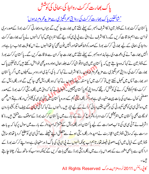 Pak Bharat Cricket Ravabit Ki Bahali Ki Koshish