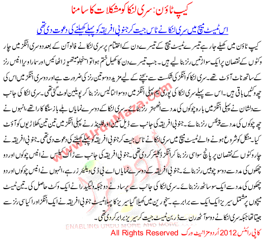 Cap Town Sri Lanka Ko Mushkilat Ka Samna