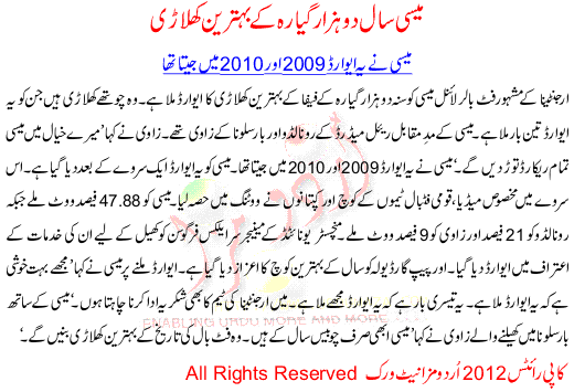 Messi 2011 K Behtreen Khilari