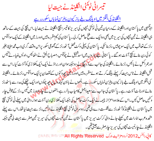 3ra T20 England Na Jeet Liya