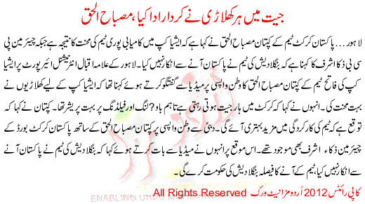 Jeet Ma Hr Khilari Na Kirdar Ada Kiya Misbah