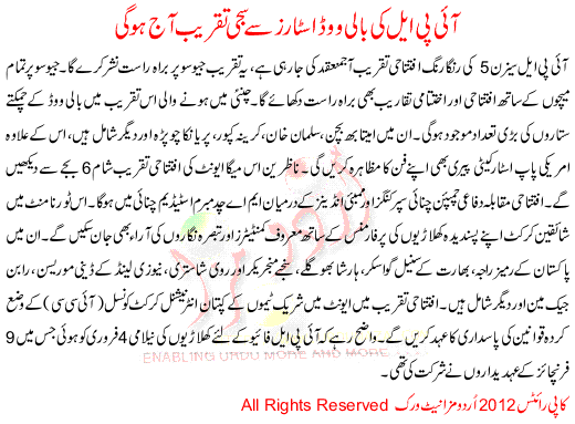 Inaugural Ceremony Of Ipl 2012 Is To Be Held Today