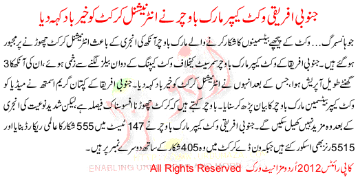 South African Wicket Keeper Mark Boucher Have Resigned From International Cricket