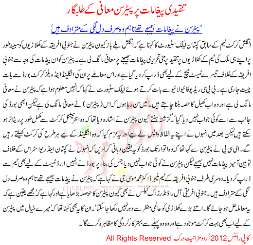Tanqeedi Peghamaat Pr Peterson Maafi K Talabgar