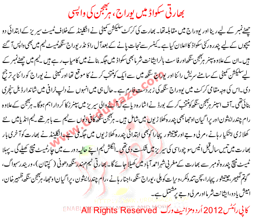 Bharti Sakwad Me Yuvraj Or Harbajhan Ki Wapsi