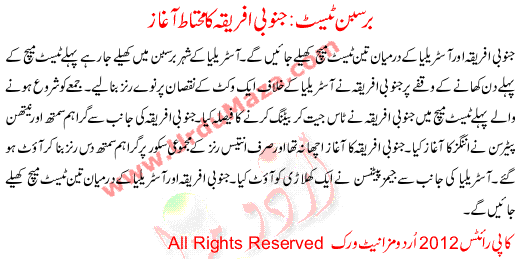 Janobi Aferiqa Ka Mohtat Aaghaz Barsban Test